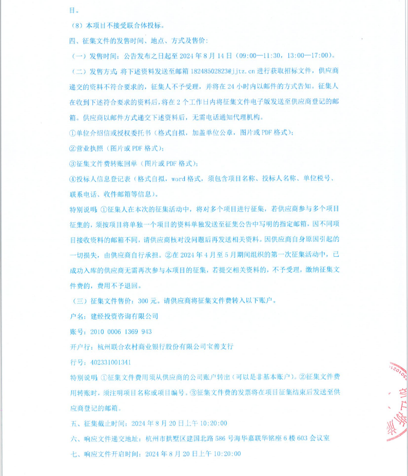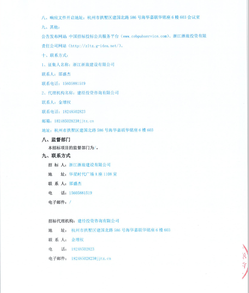 浙江浙旅建设有限公司分供商库(市政类)补充征集公告