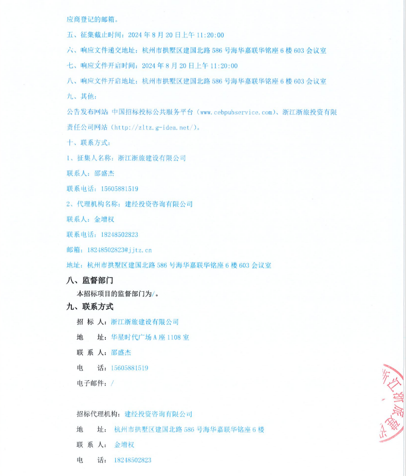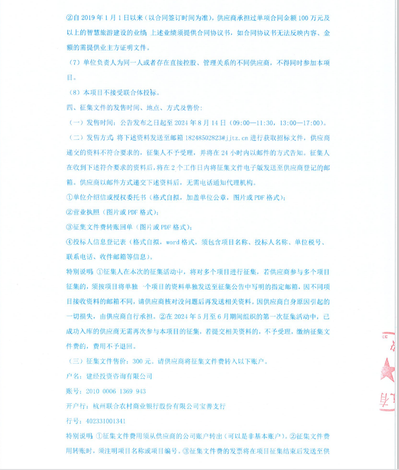 浙江浙旅建设有限公司分供商库(智慧旅游)补充征集公告