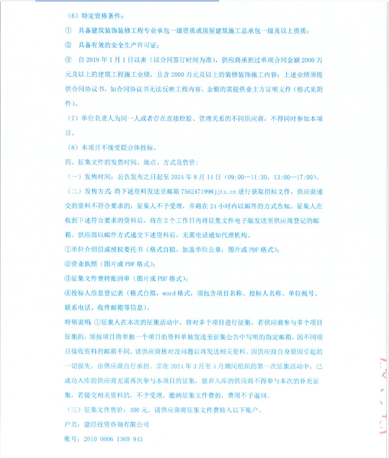浙江浙旅建设有限公司分供商库(装修类)补充征集公告