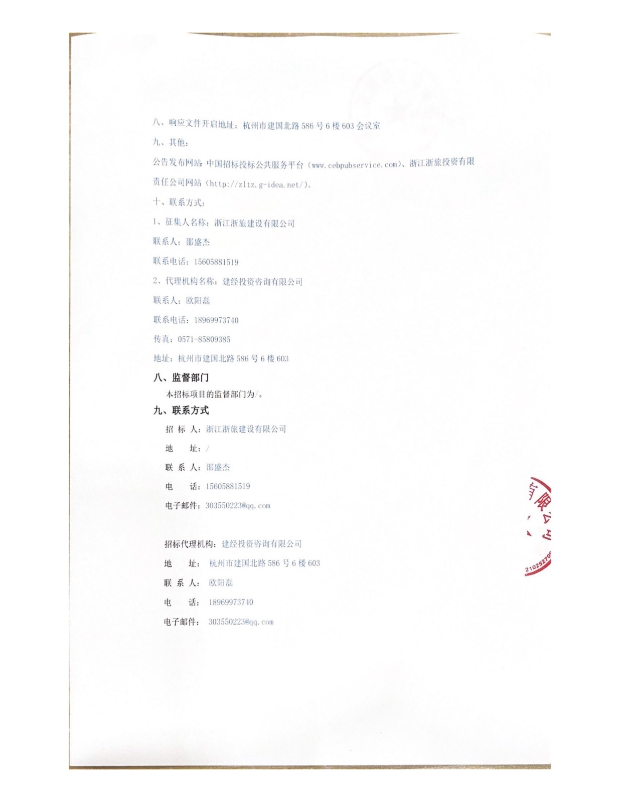 浙江浙旅建设有限公司分供商库(周转材料、建设器械)征集公告